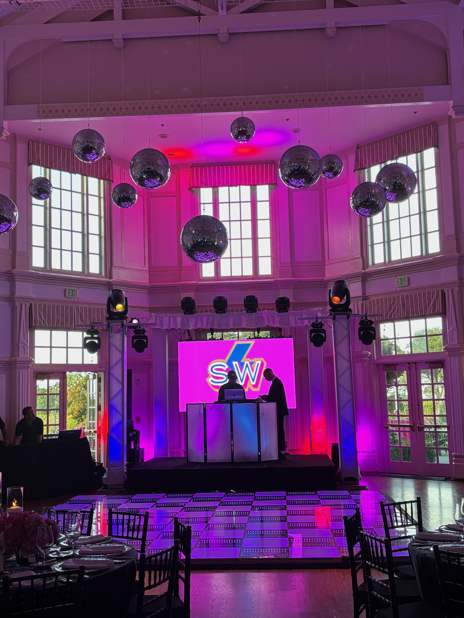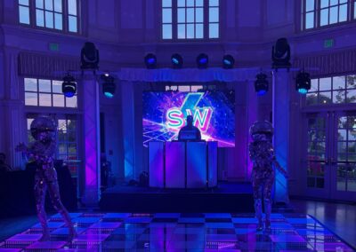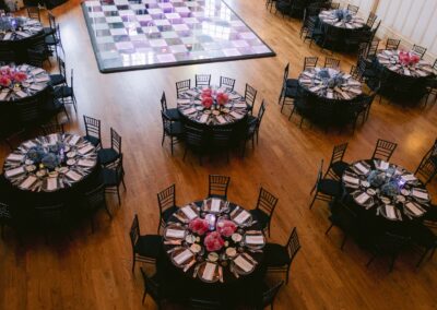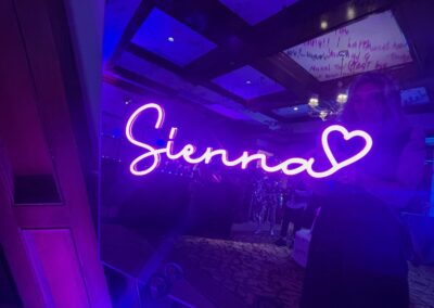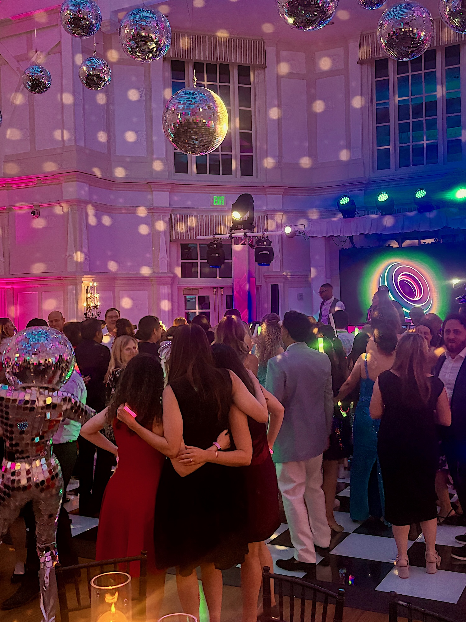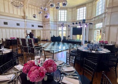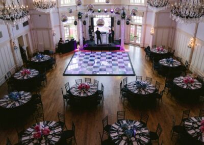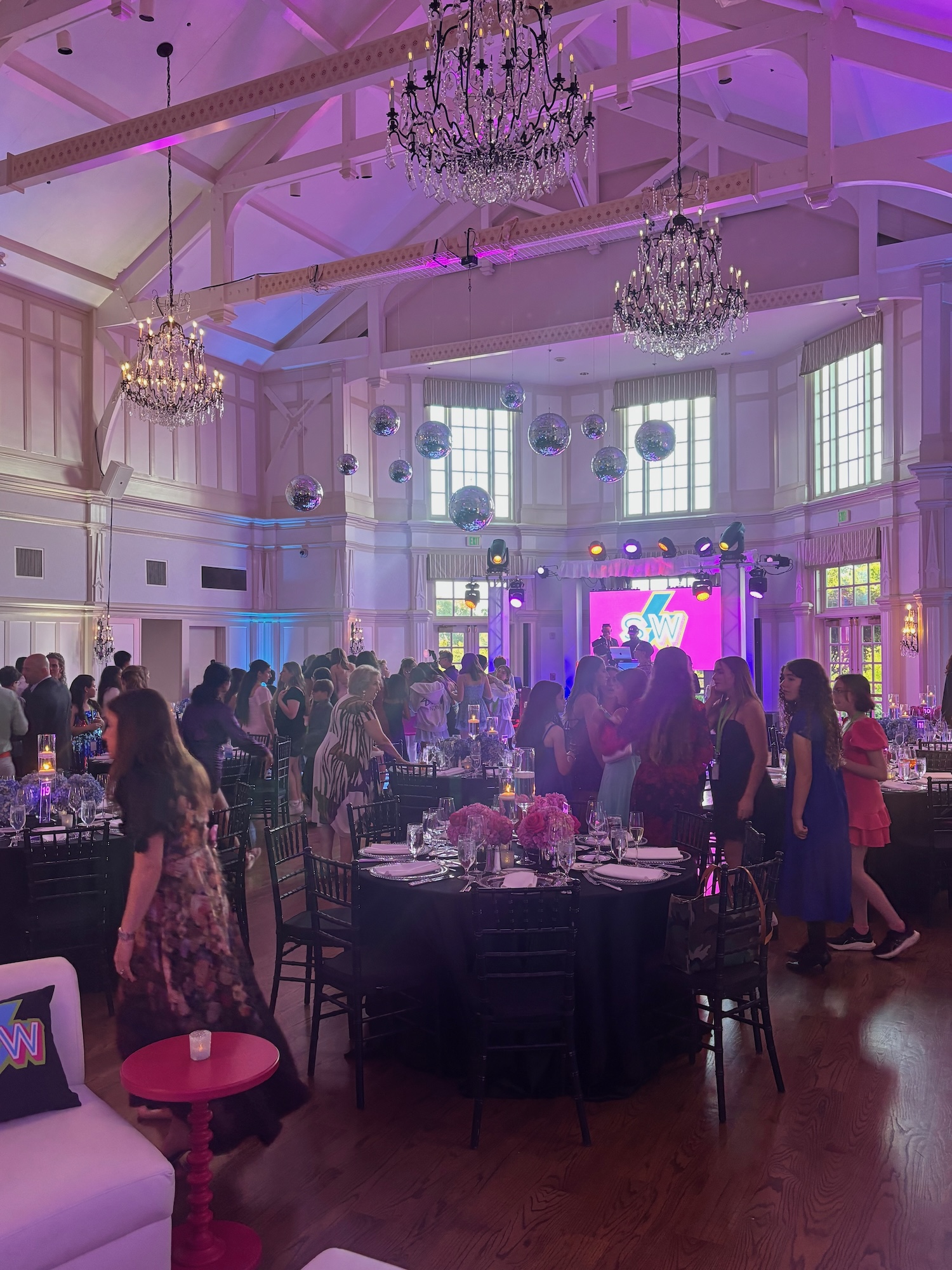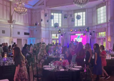 We had the fun opportunity to plan and design a very special Bat Mitzvah celebration at Peninsula Golf & Country Club this past summer. 175 guests stepped into a glowing, disco-inspired space with stylish disco balls suspended from the rafters, chic neon lighting, custom logos in neon and glow, and a sleek infinity glow dance floor. Disco ball dancers set the vibe, while a grand entrance launched an evening of high-energy dancing with CheckOneTwo DJs and MC.