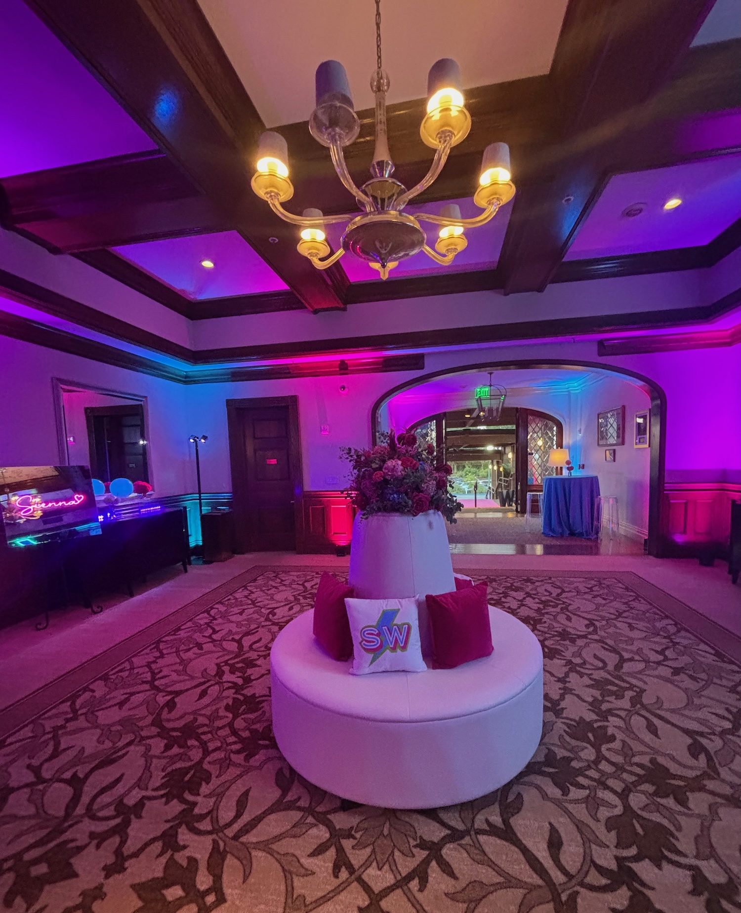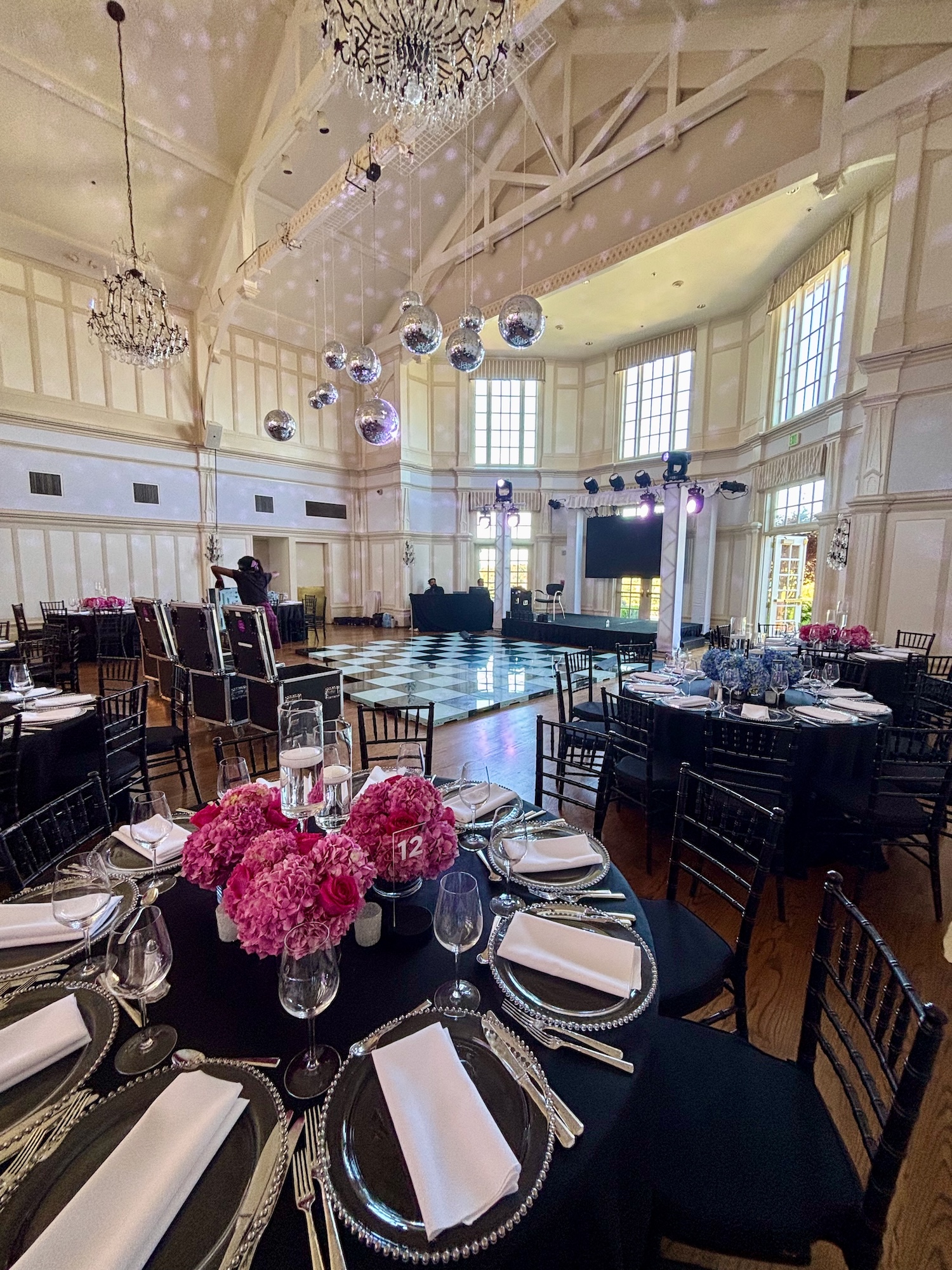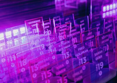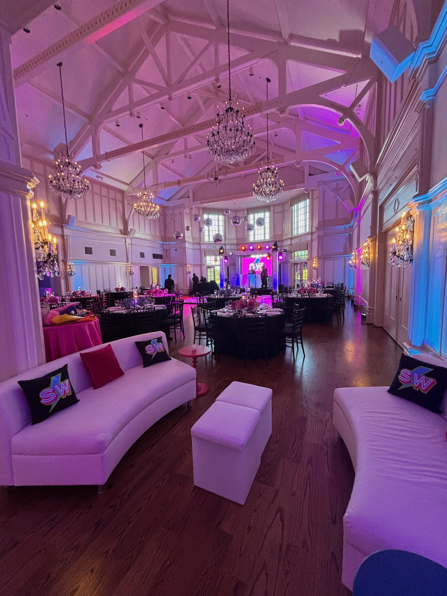 We had the fun opportunity to plan and design a very special Bat Mitzvah celebration at Peninsula Golf & Country Club this past summer. 175 guests stepped into a glowing, disco-inspired space with stylish disco balls suspended from the rafters, chic neon lighting, custom logos in neon and glow, and a sleek infinity glow dance floor. Disco ball dancers set the vibe, while a grand entrance launched an evening of high-energy dancing with CheckOneTwo DJs and MC.