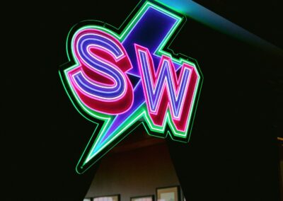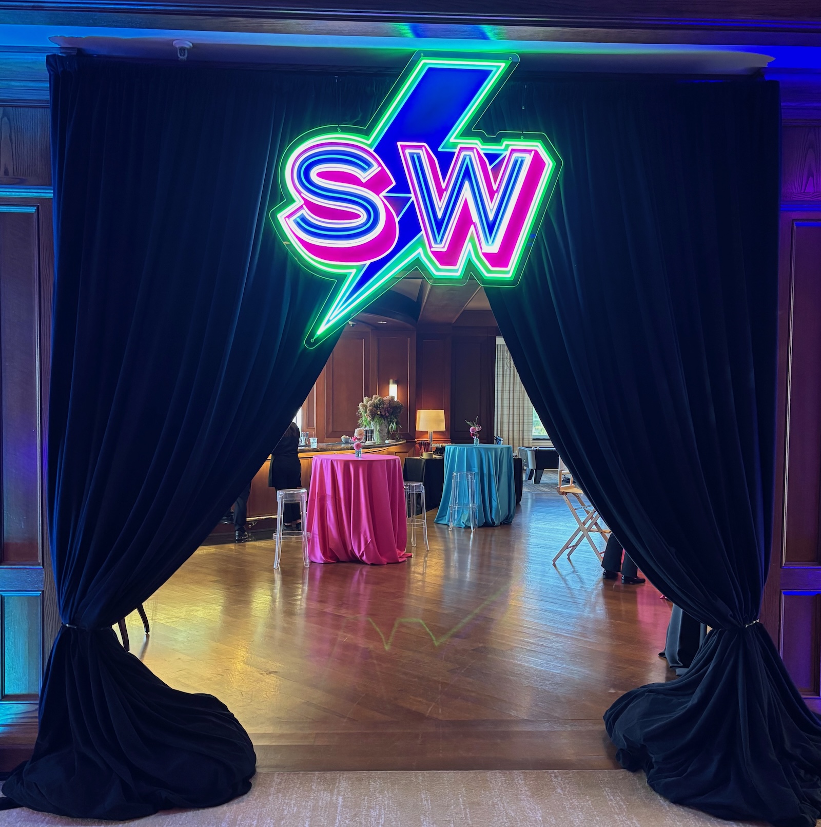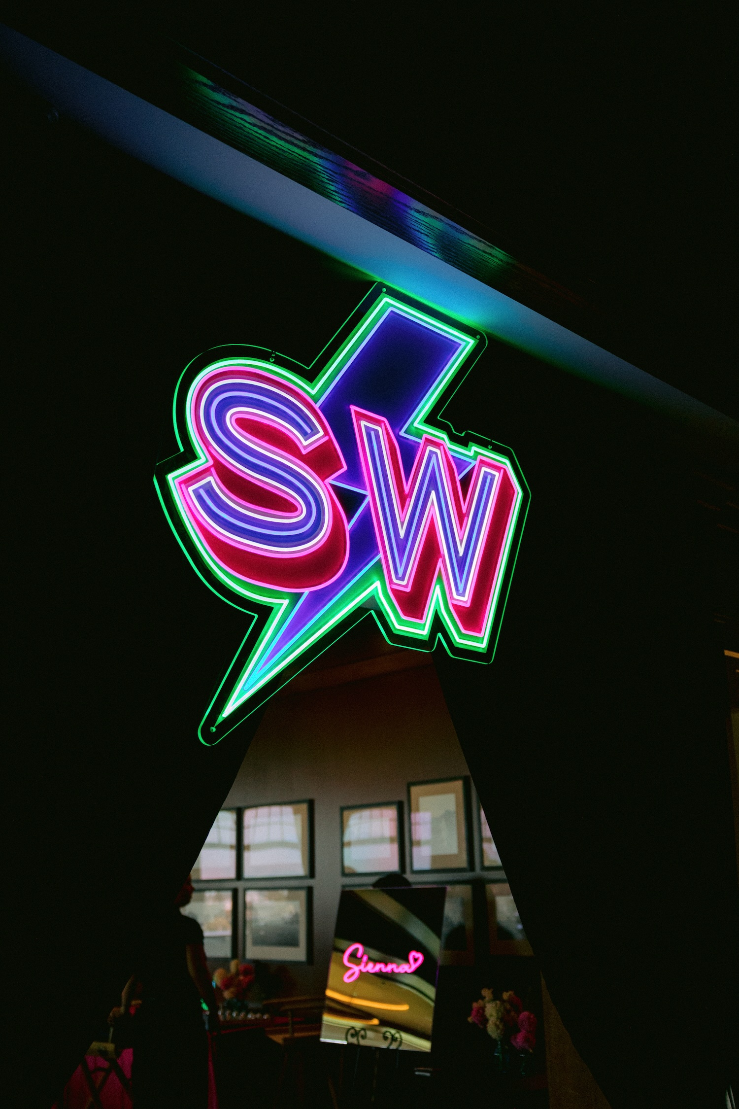 • Neon sign decor and place cards:  Mirror Magic